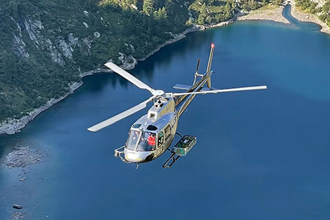 | HB-ZPD at Chironico - Photo by Luca Agosti © 8-Feb-21 | HB-ZPD of Heli Rezia AG over Laghetto in Val Chironico - Photo by Gioele Gerosa © 13-Sep-21 |