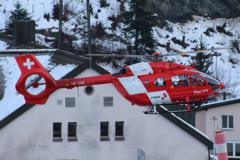 | HB-ZQN of Rega at Katharinenhospital in Stuttgart - Photo by Matthias Hansen © 25-May-21 | HB-ZQN of Rega during a rescue flight at Schiers - Photo by Roland Küng © 1-Jan-22 |