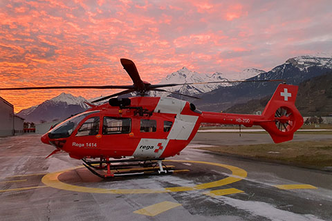 | HB-ZQO of Rega at Sion airport just after sunset - Photo by Joel Fuchs © 19-Dec-23 | HB-ZQO of Rega approaching Sion airport - Photo by Joel Bessard © 23-Dec-23 |