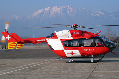 | HB-ZRA as D-HMBN on a pre delivery flight at Donauwörth - Photo by Eurocopter © 2003 | HB-ZRA of Rega at Locarno for instruction flights - Photo by Andrew Bernardi © 10-Feb-03 |