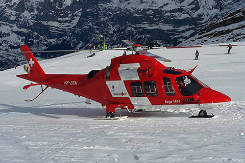 | HB-ZRN of Rega taking off from Interlaken hospital - Photo by Hans Zumbrunn © 15-Feb-17 | HB-ZRN of Rega during a rescue mission at Männlichen - Photo by Bruno Siegfried © 22-Feb-17 |