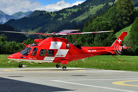 | HB-ZRN of Rega Swiss Air Ambulance at Zweisimmen - Photo by Andre Michel © 28-Jul-17 | HB-ZRN of Rega at Wilderswil equipped with an IR/EOS system - Photo by Hans Alder © 1-Oct-19 |