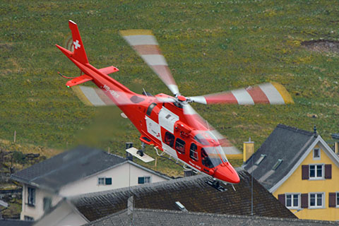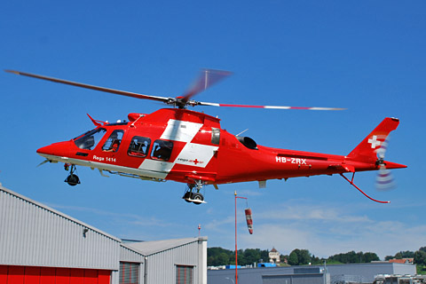 | HB-ZRX arriving at Zurich airport on delivery - Photo by Beat Levy © 31-Jul-09 | HB-ZRX of Rega during takeoff from the St.Gallen base - Photo by Paul Ulrich © 16-Jul-11 |