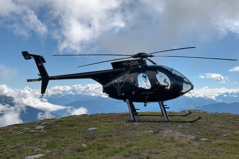| MD Power at Schindellegi - HB-ZSR with HB-ZBM and HB-ZYV - Photo by Stefan Bucheli © 10-Sep-20 | HB-ZSR of Fuchs Helikopter at Locarno airport - Photo by Oliver Colombi © 20-Jul-21 |