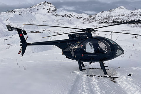 | HB-ZSR of Fuchs Helikopter at Arosa-Tschuggen - Photo by Thomas Wyss © 20-Dec-22 | HB-ZSR of Fuchs Helikopter at Mollis - Photo by Thomas Schmid © 15-May-25 |