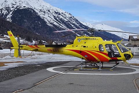 | HB-ZSV of Heli Bernina AG landing at Samedan - Photo by Raphael Weichselbraun © 20-Nov-21 | HB-ZSV of Heli Bernina AG at the homebase Samedan - Photo by Roland Küng © 7-Feb-24 |