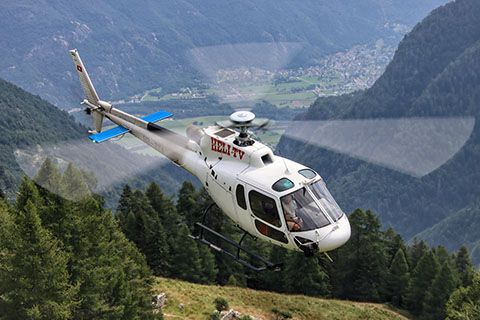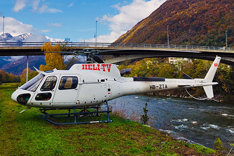 | HB-ZTA of Heli-TV SA during a stop at Alpe Vicania - Photo by Pascal Deffeyes © 19-Augl-20 | HB-ZTA and HB-ZVI of Heli-TV SA at Lodrino - Photo by Michele Ceresa © 20-Feb-21 |