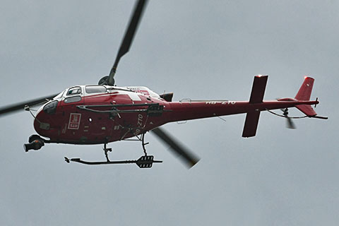 | HB-ZTO of Swiss Helicopter as camera ship for Tour de Romandie - Photo by Joel Bessard © 28-Apr-21 | HB-ZTO of Swiss Helicopter AG at Kleine Scheidegg with Eiger - Photo by Gerard Fabich © 15-Jan-22 |