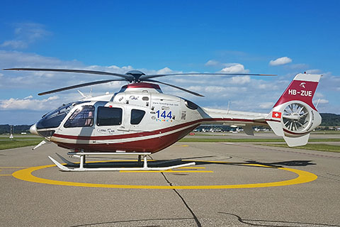| HB-ZUE with AP3 Luftrettung titles at Grabs hospital - Photo by Markus Herzig © 31-Dec-18 | HB-ZUE of Lions Air Skymedia AG at Zürich airport - Photo by Marcel Kaufmann © 17-Sep-19 |