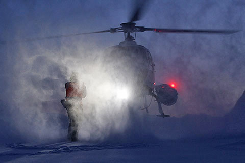 | HB-ZUT of Air Glaciers at Lauterbrunnen with sling load - Photo by Matthias Hansen © 15-Apr-14 | HB-ZUT of Air Glaciers SA at Kl.Scheidegg early in the morning - Photo by Markus Herzig © 18-Jan-15 |
