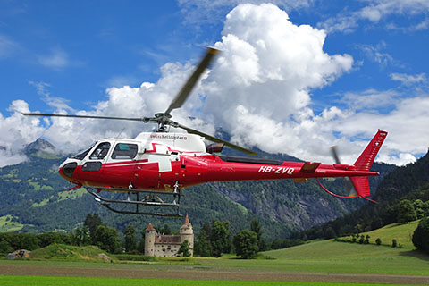 | HB-ZVQ of Swiss Helicopter AG at Igis with Castle Marschlins - Photo by Roland Küng © 22-Jun-24 | HB-ZVQ of Swiss Helicopter AG at Männlichen - Photo by Gerard Fabich © 17-Jan-25 |