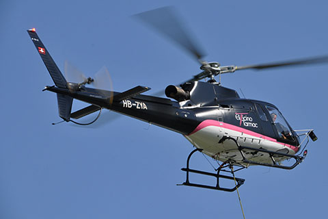 | HB-ZYA of Tarmac Aviation SA working at Fuorns-Medel - Photo by Bruno Siegfried © 8-Aug-18 | HB-ZYA of Tarmac Aviation SA at Unterrothorn - Photo by Hans Zurniwen © 24-Feb-19 |