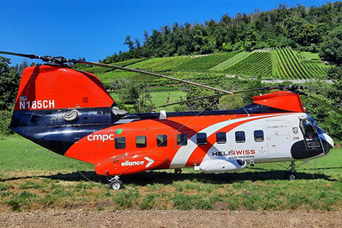 | N185CH of Columbia Helicopters taking off at Locarno - Photo by Oliver Colombi © 25-Jan-23 | N185CH of Columbia Helicopters taking off to Haltikon - Photo by Oliver Colombi © 25-Jan-23 |