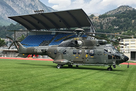 | T-336 of Swiss Air Force at Naters for fire rescue service - Photo by Joel Bessard © 18-Jul-23 |