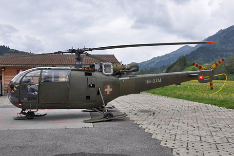 | V-208 of Swiss Air Force during approach to Buochs - Photo by Markus Herzig © 2-Aug-99 | Previous V-208 as HB-XXM of Alouette Suisse AG at Zweisimmen - Photo by Nick Däpp © 23-May-12 |