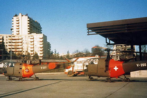 | V-260 and V-277 of Swiss Air Force in the early years - Photo Flugarchiv Graubünden © 1980s | V-260 of Swiss Air Force In poor visibility at Davos - Photo by Werner Häuselmann © 14-Jan-03 |
