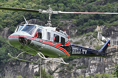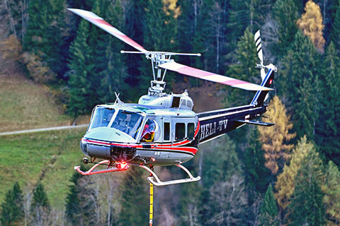 | HB-XXU of Heli-TV SA during work in front of the Niesen BE - Photo by Bruno Siegfried © 29-Oct-25 | HB-ZKN of Eagle Helicopter AG at Lauterbrunnen - Photo by Joel Bessard © 28-Dec-11 |