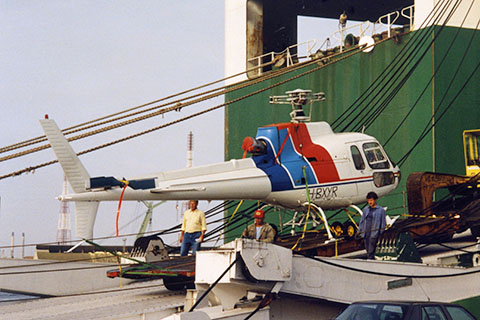 | HB-XYR of Air Grischa arrived in Europe by sea - Photo Flugarchiv Graubünden © Aug-1991 | HB-XYR of Air Grischa during work in Valle Maggia - Photo Flugarchiv Graubünden © Jun-1992 |