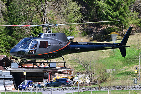 | HB-XBO (2) of BEO Helicopter AG near Lauterbrunnen - Photo by Chrigel Linder © 5-Aug-25 | HB-XBO (2) of BEO Helicopter AG at Lauterbrunnen - Photo by Dominic Siegfried © 9-Aug-25 |