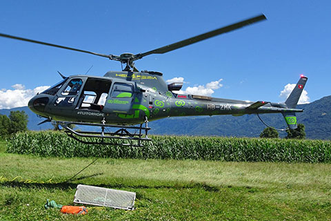 | HB-XSB (2) of Heli-TV SA during work at Blenio TI - Photo by Damiano Gualdoni © 9-Aug-25 | HB-ZLA of Swiss Helicopter AG at Locarno-Magadino - Photo by Oscar Bernardi © 6-Aug-25 |