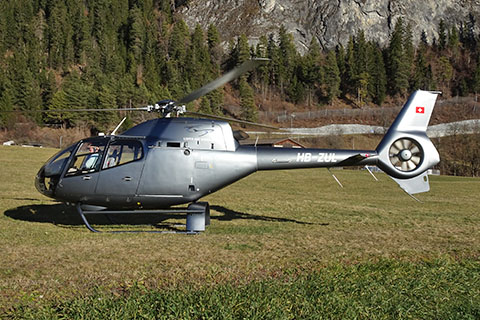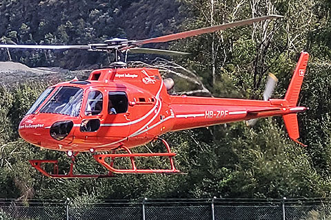 | HB-ZYI of Airport Helicopter AHB AG at Lauterbrunnen - Photo by Michael Mau © May-25 | OE-XHZ operated by Air Zermatt AG at Raron - Photo by Peter Steinlechner © 11-Sep-15 |
