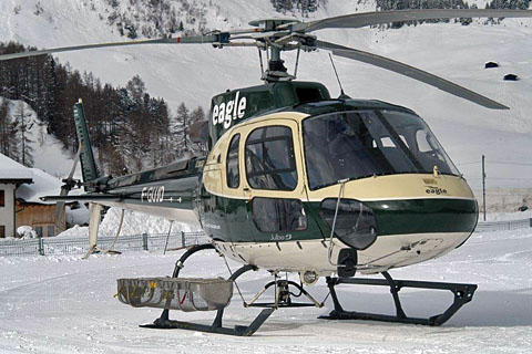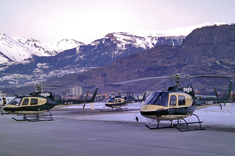 | F-HETH, F-GUJD and F-HAEN of Eagle Helicopter at Sion - Photo by Ralf Tonezzer © 12-Jan-12 | F-GUJD of Eagle Helicopter at Stilli Heliport Davos - Photo by Werner Häuselmann © 26-Jan-12 |