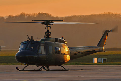 | HB-RXD of Swiss Huey / Helitrans Solutions over Birsfelden - Photo by Christian Brechbühl © 7-Nov-24 | HB-RXD of Swiss Huey / Helitrans Solutions at Basel EAP - Photo by Christian Brechbühl © 15-Nov-24 |