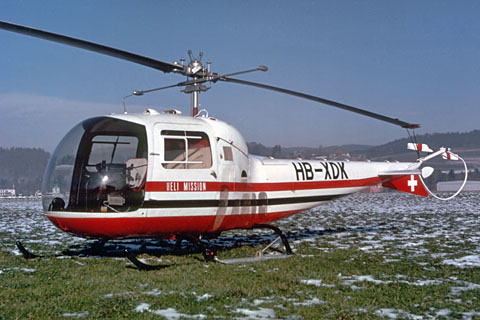 | HB-XDK of Helimission at Bern-Belp - Photo by Paul Schüpbach © 26-Nov-71 |