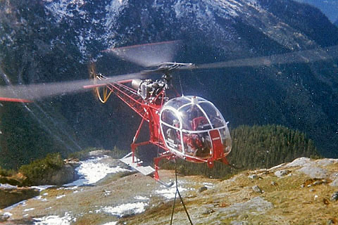 | HB-XDL of BOHAG during a transport job at Kandersteg - Photo by Adrian Rösti © 1984 |