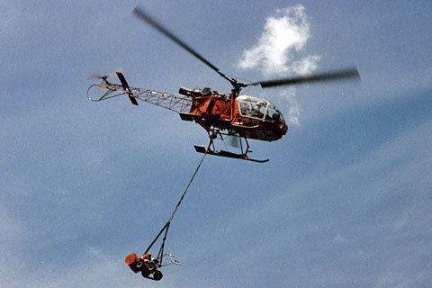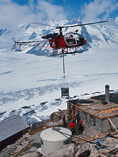 | HB-XDL of Schweizerische Rettungsflugwacht SRFW at Alp Lavoz - Photo by Roland Küng © Aug-72 | HB-XDL of BOHAG at Konkordiahütte - Photos ETH-Bibliothek Zürich, Bildarchiv © 1976 |