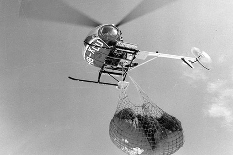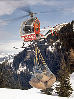 | HB-XDU of Linth Helikopter during a transport at Churwalden - Photo Flugarchiv Graubünden © 1973 |