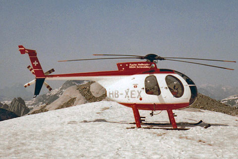 | HB-XEX Hughes 369D of Fuchs Helikopter - Photo Archiv Michael Mau © 1985 | HB-XEX during a visit at Lugano airport - Photo by Sandro Regusci © Aug-86 |