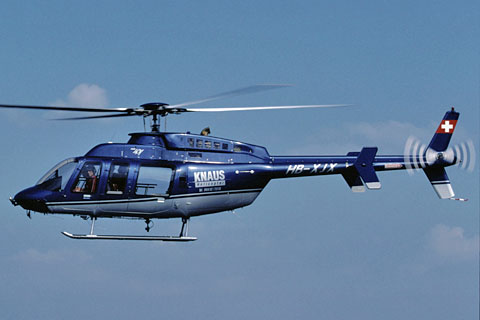 | HB-XJX with an exclusive car at Bern-Belp - Photo by Markus Herzig © 22-Aug-97 | HB-XJX on drylease to Knaus Helicopter at Bern-Belp - Photo by Markus Herzig © 29-Jul-99 |
