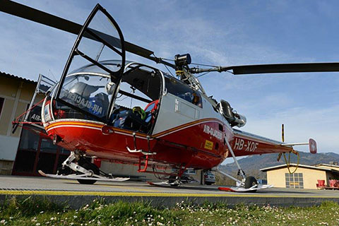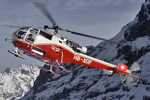 | HB-XOF of Air Glaciers SA taking off from Lauberhorn - Photo by Markus Herzig © 18-Jan-03 - ANET | HB-XOF of Air Glaciers SA landing at Sion hospital - Photo by Alexandre Praz © 24-Oct-03 |