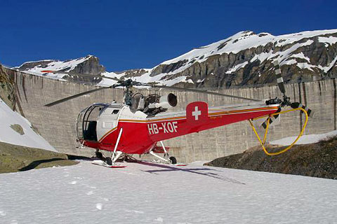 | HB-XOF of Air Glaciers in front of Barrage d'Emosson - Photo by Nicolas Fauchere © 20-May-05 | HB-XOF of Air Glaciers at Petit Mont-Bonvin on rescue stand by - Photo by Axel de Preux © 26-Mar-06 |