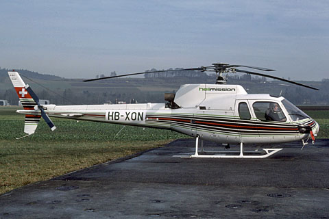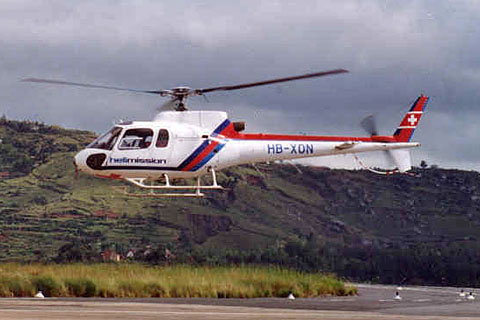 | HB-XON of Helimission at Bern-Belp - Photo by Hanspeter Zuercher © Jan-84 | HB-XON of Helimission operating in Madagascar - Photo by Helimission © 1990's |