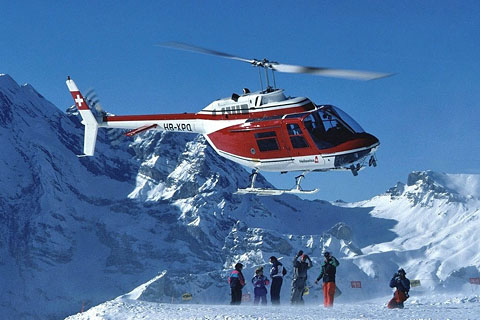 | HB-XPQ of Heliswiss taking off from Lauberhorn helipad - Photo by Markus Herzig © 22-Jan-94 - ANET | HB-XPQ of Heliswiss just painted in the newest look - Photo by Markus Herzig © 22-Jun-02 |