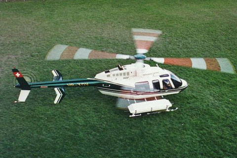 | HB-XQV of Hélicoptère Service SA turning into final at Sion - Photo by Markus Herzig © 24-Mar-04 | HB-XQV of Hélicoptère Service SA at sunny Locarno - Photo by Damiano Gualdoni © 19-May-04 |