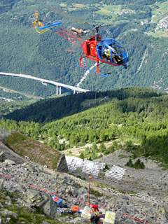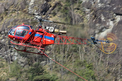 | HB-XRD of Heli-TV SA at Mendrisio on a grape harvest - Photo by Christian Imperatori © 28-Sep-06 | HB-XRD of Heli-TV SA working at Pizzo Erra - Photos by Piero Menucelli © 3-Aug-10 |