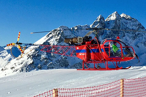 | HB-XRD of Heli-TV SA at Munt da San Murezzan - Photo by Pascal Deffeyes © 18-Feb-17 | HB-XRD of Heli-TV SA at Pianezza - Photo by Aida Scolari © 29-Jul-17 |