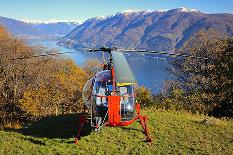 | HB-XRD of Heli-TV SA during work at Cevio - Photo by Olivier Colombi © 8-Apr-21 | HB-XRD of Heli-TV SA above Lago Maggiore - Photo by Olivier Colombi © 6-Nov-21 |