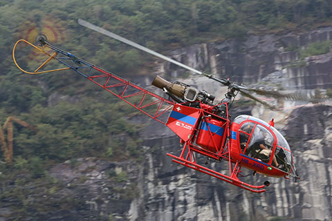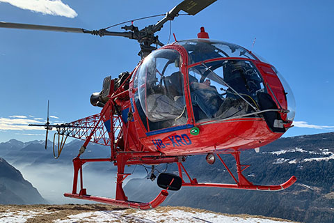 | HB-XRD of Heli-TV SA - great to see a flying Lama in 2022 - Photo by Stefan Bucheli © 18-Feb-22 | HB-XRD of Heli-TV SA working at Faido - Photo by Thomas Schmid © 18-Apr-22 |