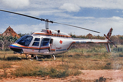 | HB-XRH of Helimission in Ethiopia - Photo by Ernst Tanner © 1986 |