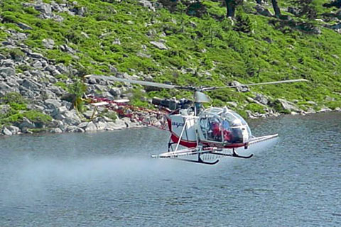 | HB-XRN of Air Glaciers SA performing a spray demo at Nendaz - Photo by Reynold Favre © 20-Jul-02 |