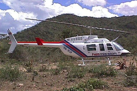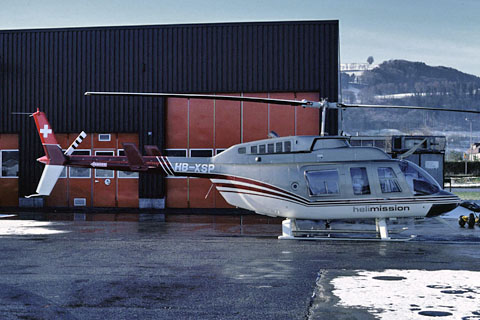 | HB-XSP of Helimission in old livery at Bern - Photo by Markus Herzig © 23-Jan-88 | HB-XSP of Helimission in Mozambique - Photo by Samuel Marti © 2000 |