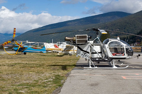 | Previous HB-XTC as C-GTHT at Nelson BC still with Heliswiss titles - Photo by Pierre Gillard © 1-Oct-07 |