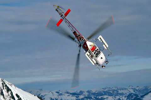 | HB-XTD of Heliswiss in winter wonderland at Dent de Nendaz - Photo by Gerard Fabich © 23-Dec-05 | HB-XTD of Heliswiss leaving Dent de Nendaz - Photo by Werner Häuselmann © 23-Dec-05 |