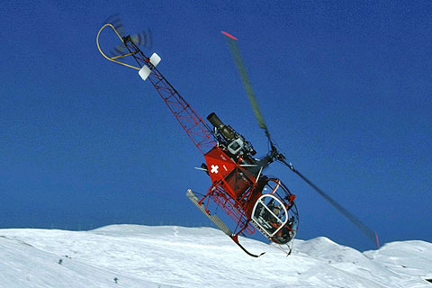 | HB-XTW of Air Glaciers SA at Lauberhorn in the first livery - Photo by Markus Herzig © 22-Jan-94 | HB-XTW of Air Glaciers SA approaching Lauberhorn - Photo by Markus Herzig © 18-Jan-97 |