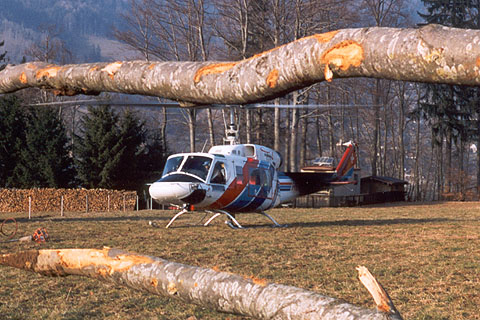 | HB-XVZ of Heliswiss during logging work at Pré de Joux - Photo by Markus Herzig © 19-Feb-01 | HB-XVZ of Heliswiss during logging work at Pré de Joux - Photo by Markus Herzig © 19-Feb-01 - ANET |