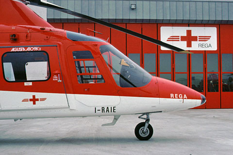 | Future HB-XWA as I-RAIE at Bern during the offical handover - Photo by Markus Herzig © 13-Dec-91 | HB-XWA of Swiss Air Ambulance at Malpensa - Photo by Damiano Gualdoni © 21-May-96 |